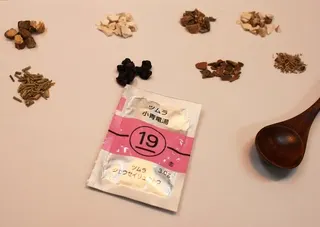上写真:エキス顆粒と煎じ薬がある小青龍湯